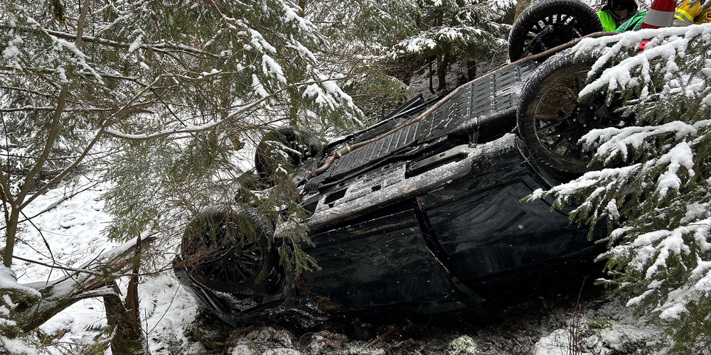 Der 35-jährige Lenker eines Personenwagens war gegen 12.50 Uhr via Obergross talwärts in Richtung Trachslau unterwegs. Im bewaldeten Strassenabschnitt verlor er auf der schneebedeckten Nebenstrasse die Kontrolle über sein Fahrzeug und kam linksseitig von der Fahrbahn ab. In der Folge stürzte das Auto über einen steil abfallenden Abhang rund 20 Meter in die Tiefe, wobei es sich überschlug und auf dem Dach liegend zum Stillstand kam.