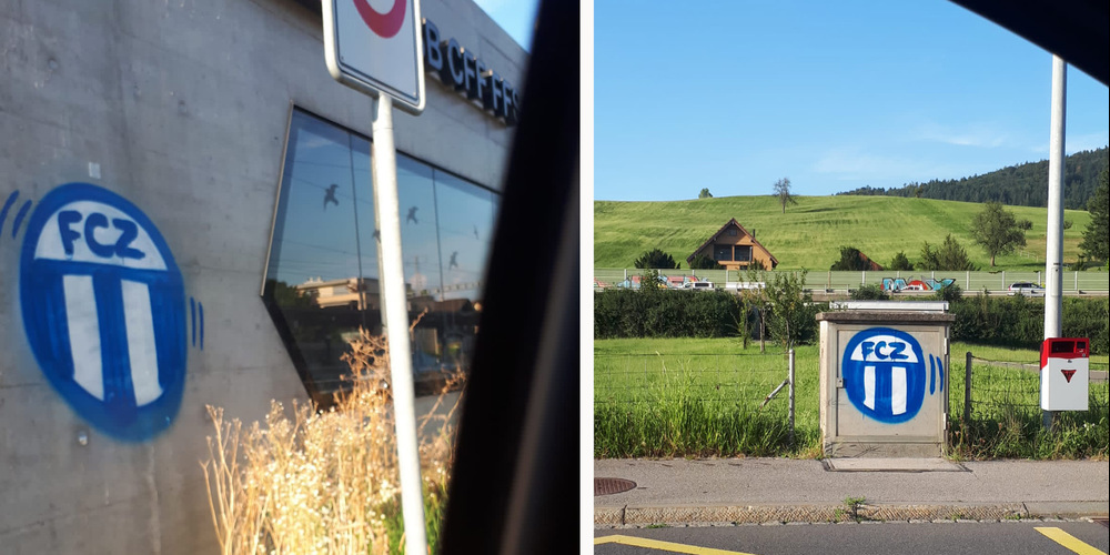 Am Bahnhof Lachen und in Tuggen griffen Zürcher Fans zu Farbe, wie diese Beispiele zeigen.