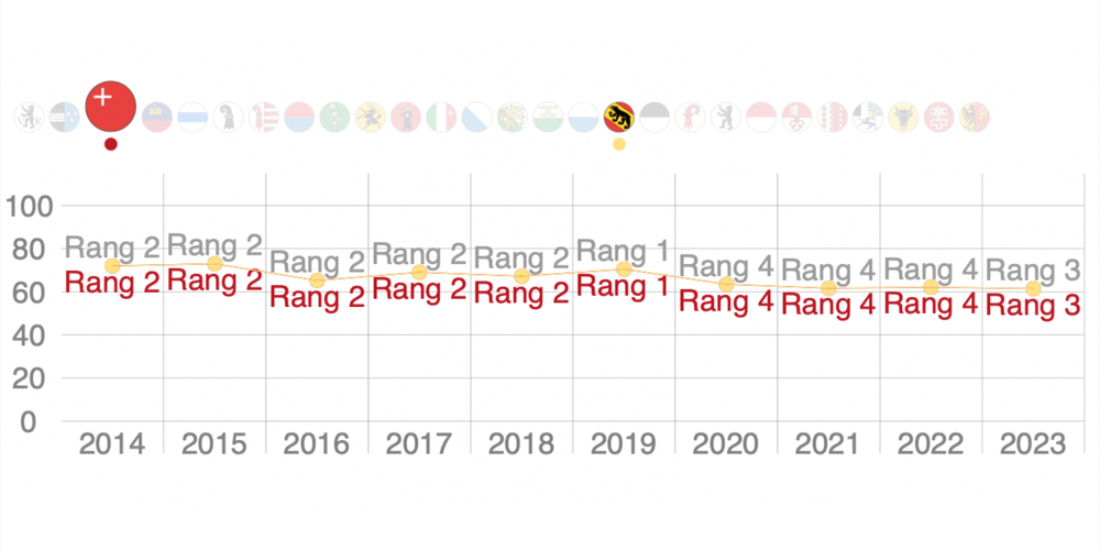 Der Kanton Schwyz ist zurück auf dem Podest, nachdem er im 2020 vom ersten auf den vierten Platz zurückgefallen war. Im dicht umkämpften Spitzenfeld des Avenir-Suisse-Freiheitsindexes platziert sich der Innerschweizer Kanton nun knapp vor dem Fürstentum Liechtenstein, das ebenfalls im Index erfasst wird.