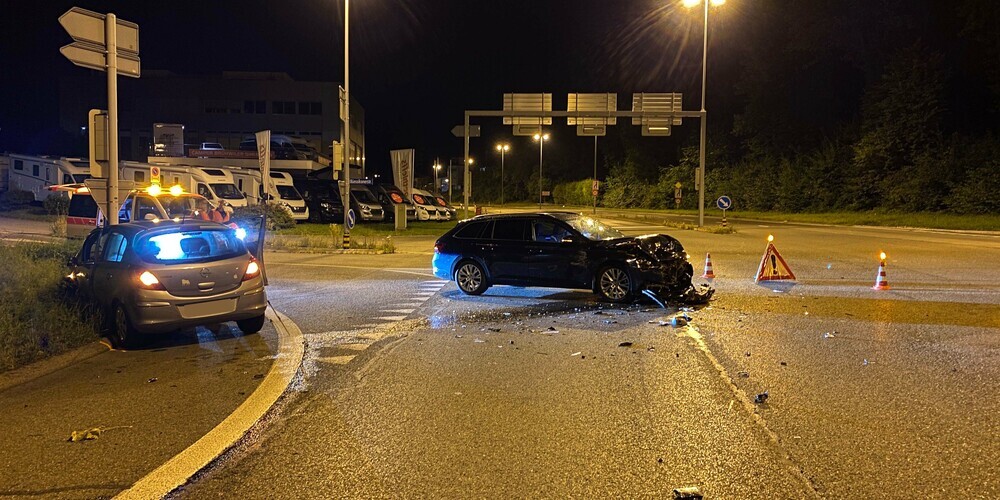 Ein weiterer Verkehrsunfall ereignete sich kurz nach Mitternacht auf der Sihlbruggstrasse in Walterswil (Gemeinde Baar). Ein 35-jähriger Autofahrer missachtete bei der Kreuzung zur Autobahn das dortige Rotlicht. In der Folge kam es zu einer heftigen Kollision mit dem Auto eines 62-jährigen Lenkers, der zur gleichen Zeit von der Büessikonerstrasse in die Sihlbruggstrasse einbog.