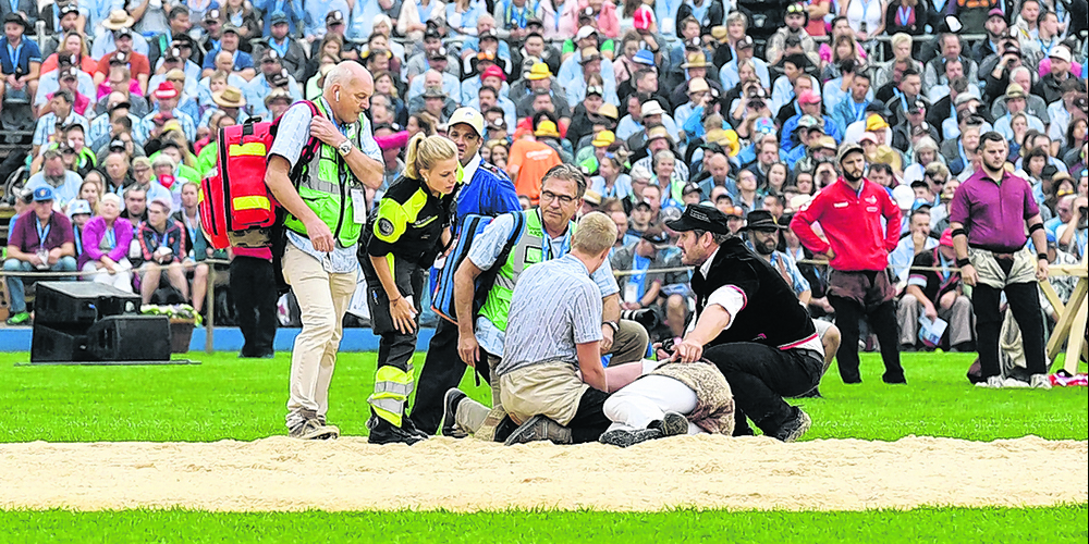 Die Schmerzen sind extrem. Das Innenband im linken Fuss ist gerissen. Das Wadenbein gebrochen. «Ich habe zuerst gar nicht gesehen, dass mein Fuss in eine andere Richtung zeigt.» Streiff wird abtransportiert. Das Schwingervolk applaudiert. «Da realisierte ich: Es ist vorbei! Die ganze Vorbereitung, das stundenlange Schinden und Trainieren – und dann das.»