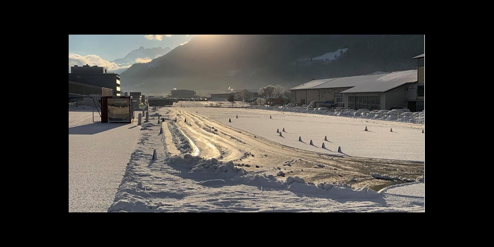 Es wird langsam hell draussen. Der Nebel steigt beim Fenster empor. Die Kursleitende wedelt mit einem Zettel. Die Erwartungen an den Kurs aufschreiben – geübter werden mit schwierigen Strassenverhältnissen. Theorie. Es geht nach draussen. «Perfekte Verhältnisse», freut sich die Fahrlehrerin über die immer noch mit Schnee und Eis bedeckte Piste. Sie verteilt magnetische Nummerschilder und Funkgeräte. Am eigenen Auto montieren, los geht es.